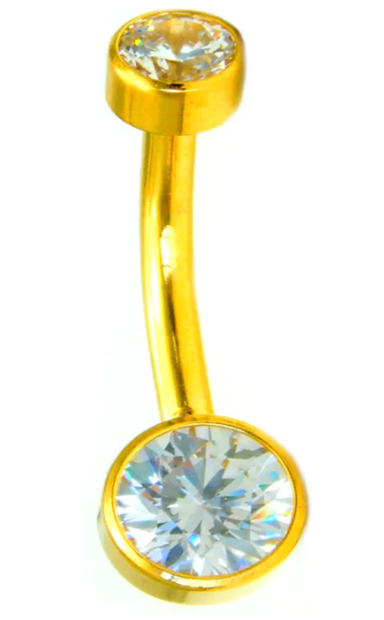 Piercing BananaBell - umbigo, rosca interna com zirconia nas pontas.